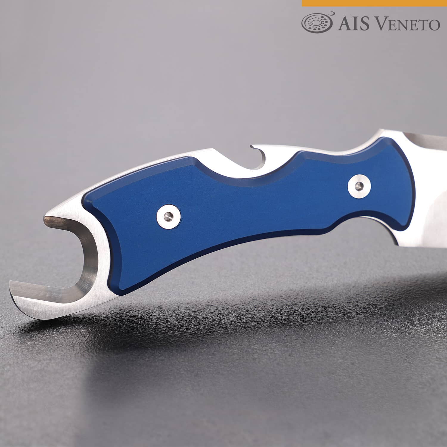 - Impugnatura in alluminio di colore blu istituzionale AIS: moderna, igienica ed elegante, studiata per una presa sicura.